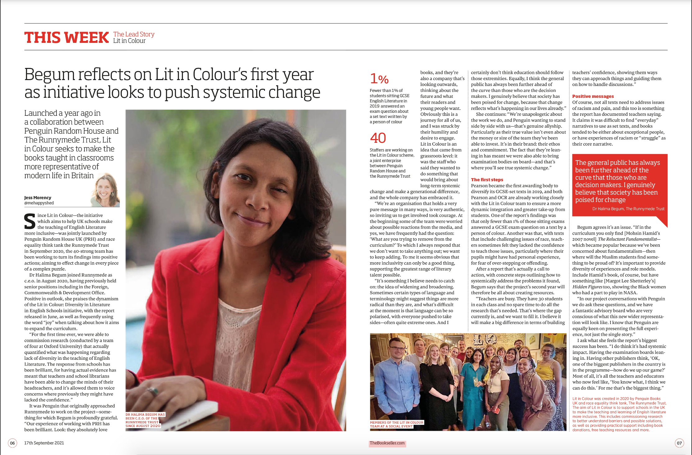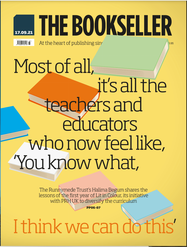 Film and tv shows that still only cast white people make me feel extremely uncomfortable. The same goes for the English Literature curriculum – which, as an English teacher, I taught from for ten years. So I’m thrilled to see Penguin Random House UK (PRH) and the Runnymede Trust not only having produced a report on the situation – in conjunction with the English and Literacy department of Oxford University – but creating a real-time call to action, with definitive ways of creating systemic change. It’s also brilliant to see The Bookseller continue to champion their work, not least by putting the article on the front cover.