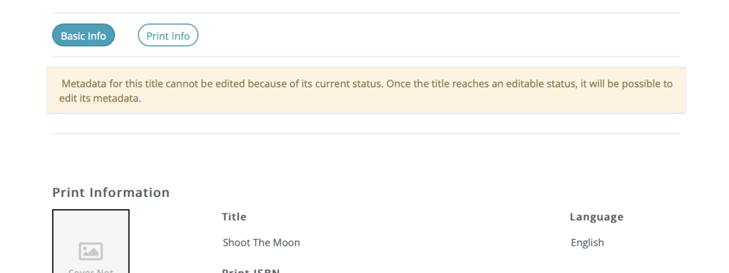 you won’t be able to change/update your basic information (imprint name, short description etc). Or, as was the case with me, you’ll change it, it will stick for a little bit, then revert to what was there originally. Small thing, but this almost broke me!