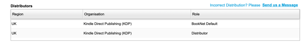 They can only have one distributor on their system, so they changed it from KDP to Ingram Spark. (And that’s regardless of the fact that, as you’ll see below, Gardners are actually getting the book from IS and distributing it to Waterstones.)