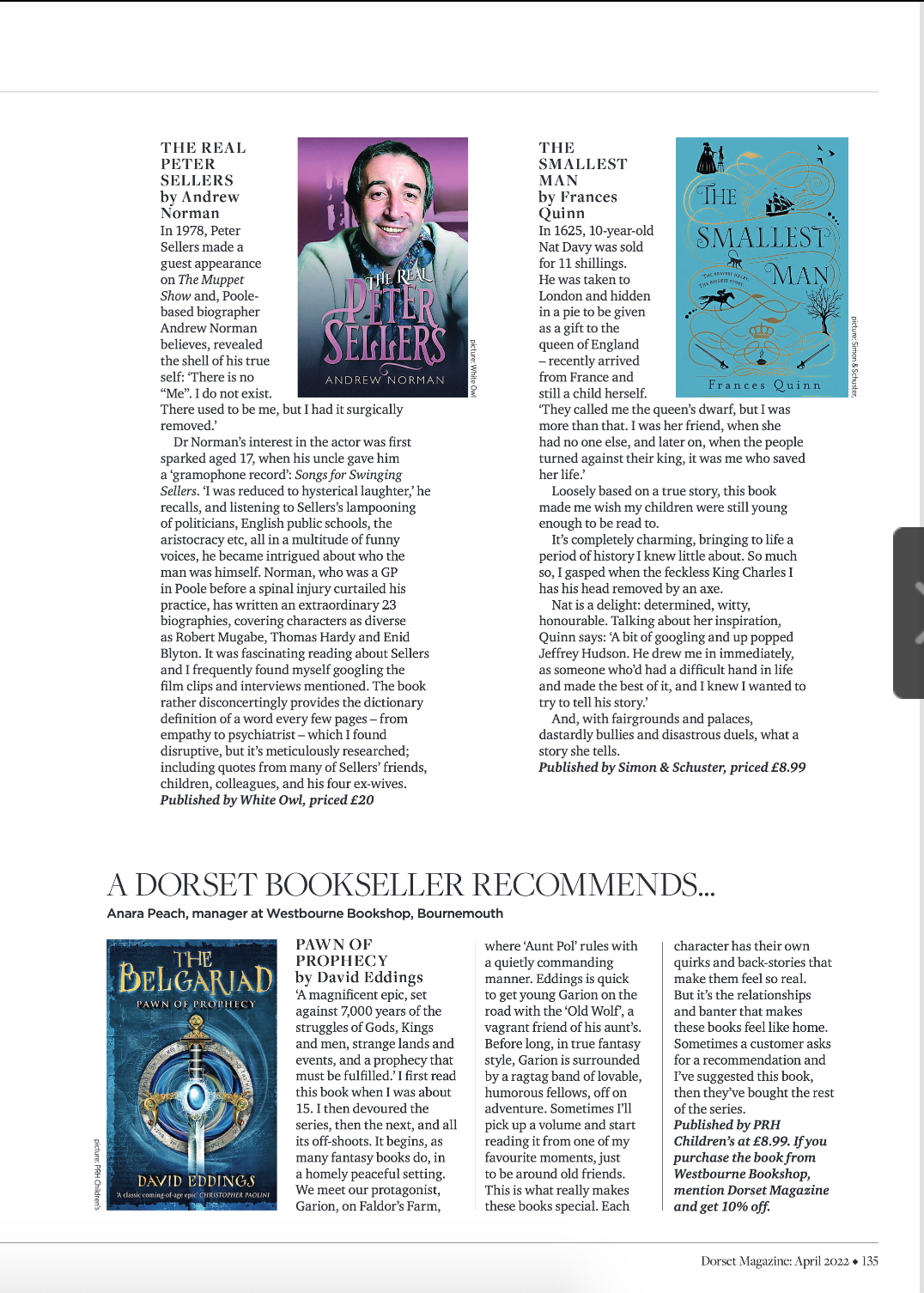 Twenty-Six Letters: April Posted byJess MorencyApril 7, 2022October 25, 2022Posted inbook reviews, Dorset MagazineTags:book reviews, caryl lewis, dorset magazine, doubleday books, frances quinn, Jacqueline roy, King Charles II, mish cromer, peter sellers, simon & schuster, the belgariad, the gosling girl, the smallest man, westbourne bookshop Share this: Share on X (Opens in new window) X Share on Facebook (Opens in new window) Facebook Like Loading... Related Published by Jess Morency Feature writer, teacher and brand consultant View more posts