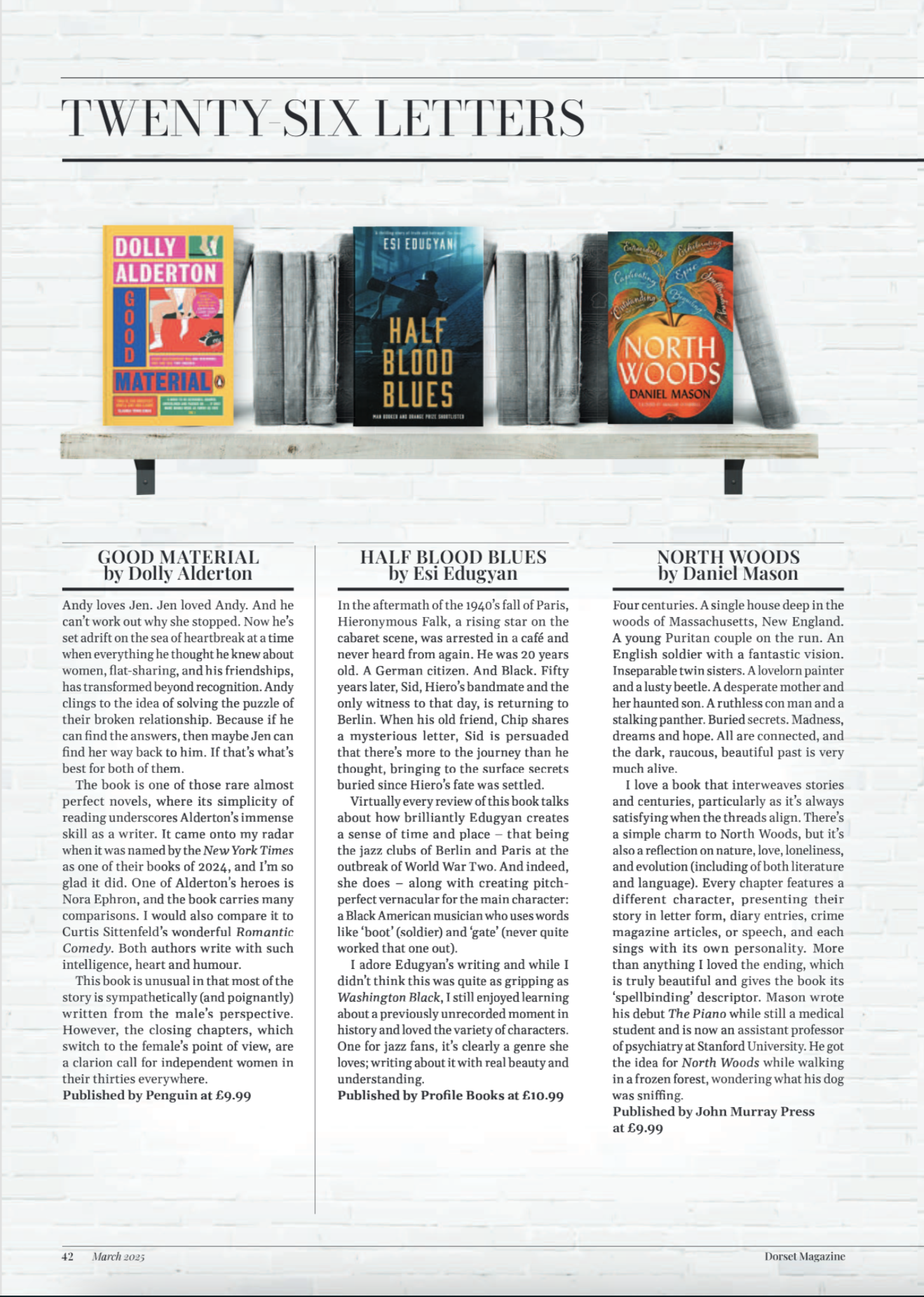 Twenty-six Letters: March 2025 Posted byJess MorencyFebruary 25, 2025Posted inbook reviews, Dorset MagazineTags:daniel mason, dolly alderton, Esi Edugyan, rosa kwon easton, t j klune, tess burnett Share this: Click to share on X (Opens in new window) X Click to share on Facebook (Opens in new window) Facebook Like Loading... Related Published by Jess Morency Feature writer, teacher and brand consultant View more posts