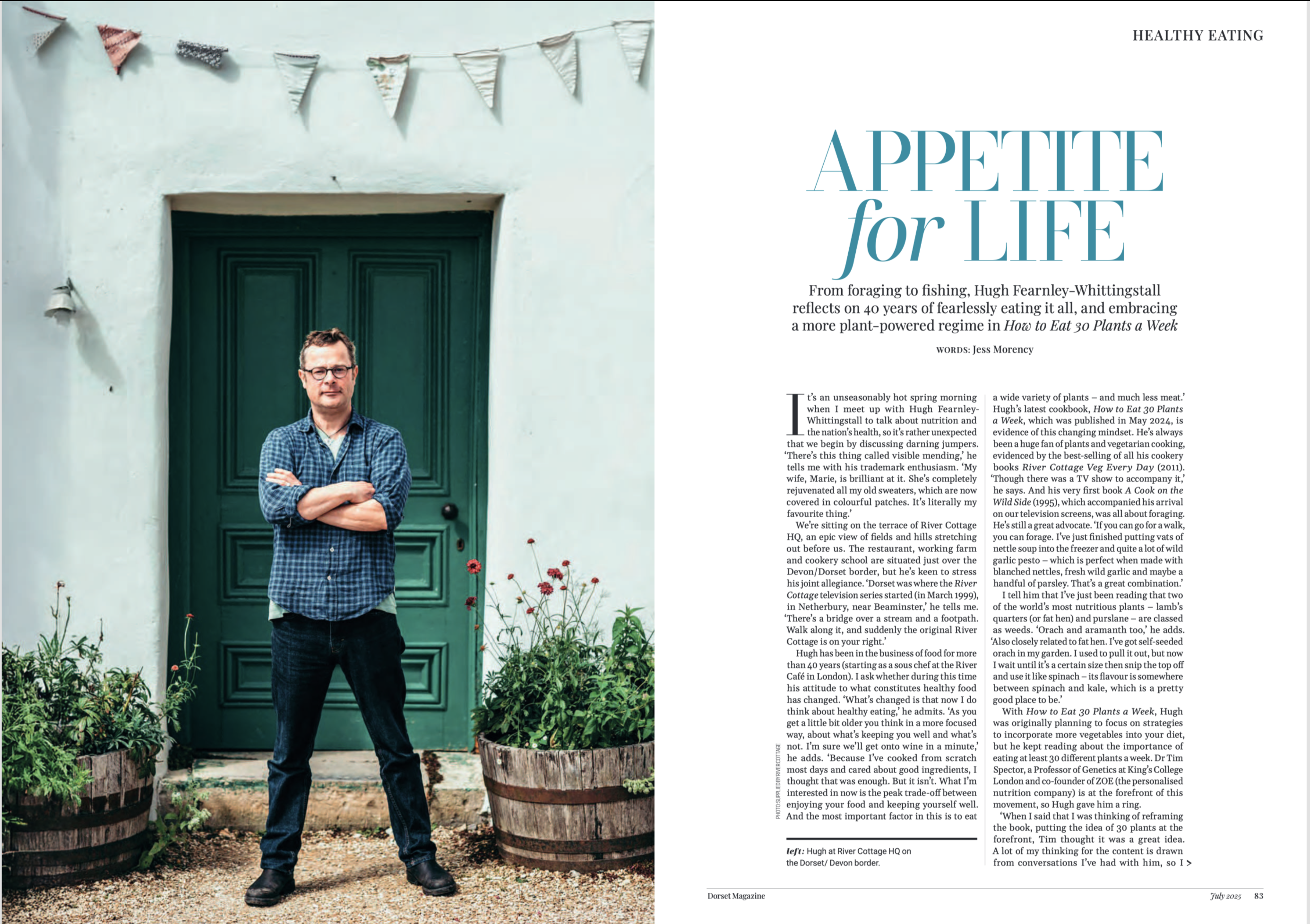 When Thirty is the Magic Number Posted byJess MorencyJune 27, 2025Posted inbook reviews, Dorset MagazineTags:30 plants a week, Chris Van Tulleken, courgette honey and lemon cake, creamy roast cauliflower and cashew soup, How to Eat 30 Plants a Week, Hugh Fearnley-Whittingstall, River Cottage, River Cottage Cafe, UPF Share this: Click to share on X (Opens in new window) X Click to share on Facebook (Opens in new window) Facebook Like Loading... Related Published by Jess Morency Feature writer, teacher and brand consultant View more posts