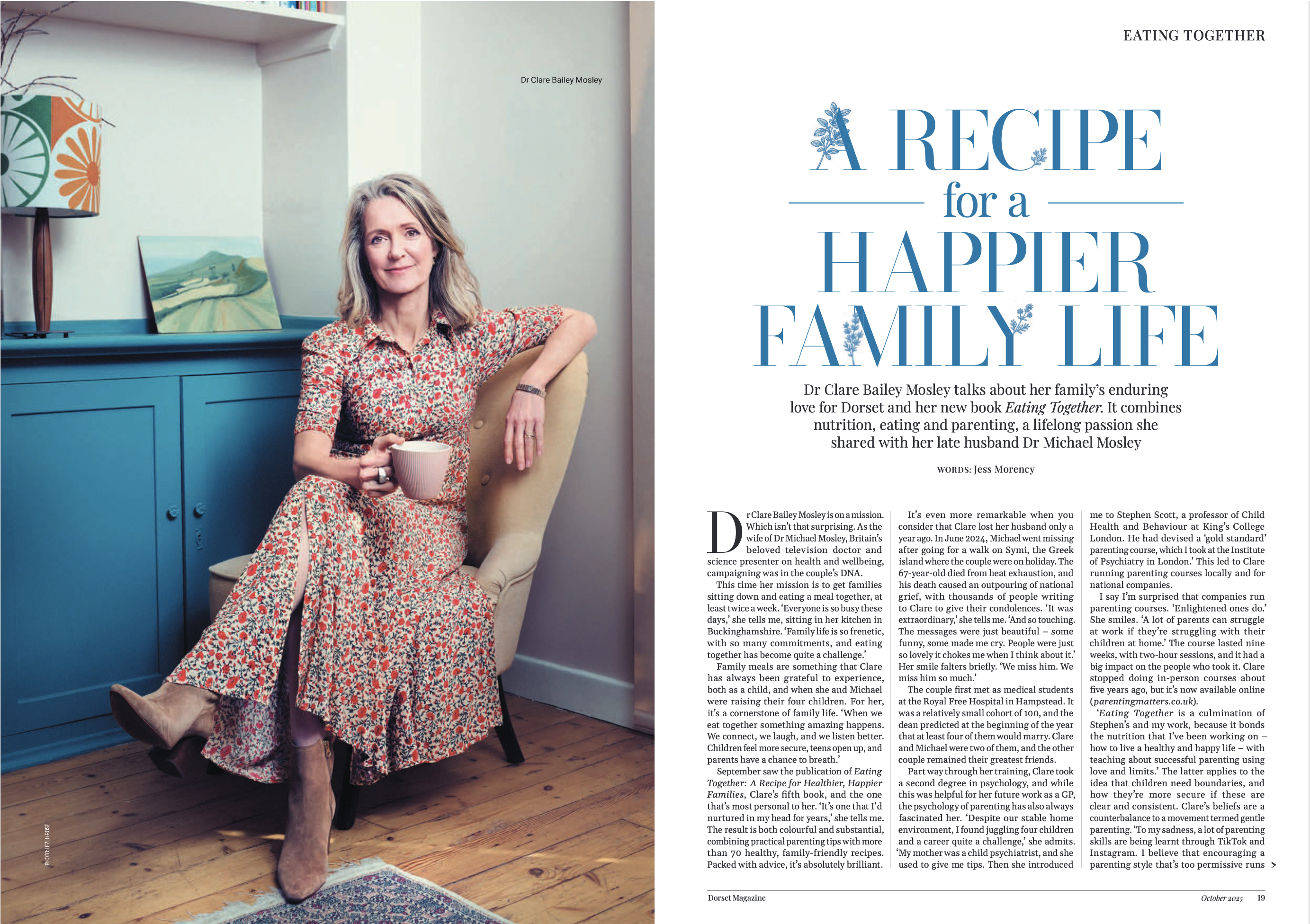 Eating Together Posted byJess MorencyOctober 1, 2025October 1, 2025Posted inDorset MagazineTags:claire bailey mosley, dorset magazine, easy family meals, eating together, family meals, michael mosley Share this: Share on X (Opens in new window) X Share on Facebook (Opens in new window) Facebook Like Loading... Related Published by Jess Morency Feature writer, teacher and brand consultant View more posts