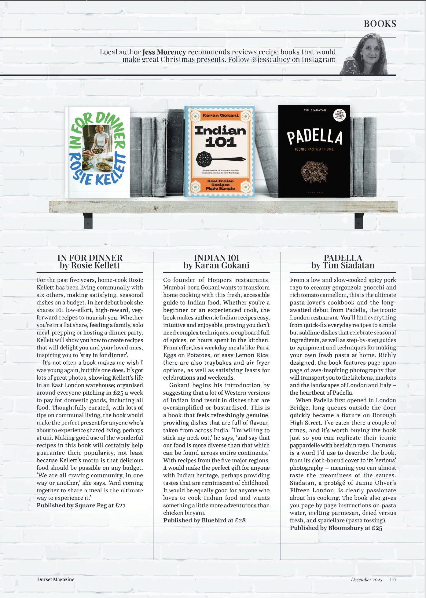 Twenty-six Letters: December Posted byJess MorencyNovember 24, 2025Posted inbook reviews, Dorset MagazineTags:Finca, Finca Dorset, In For Dinner, Indian 101, Indy Cafe Cookbook, Karan Gokani, Lemon, Lemons, Padella, Rosie Kellett, Thomas Straker Share this: Click to share on X (Opens in new window) X Click to share on Facebook (Opens in new window) Facebook Like Loading... Related Published by Jess Morency Feature writer, teacher and brand consultant View more posts