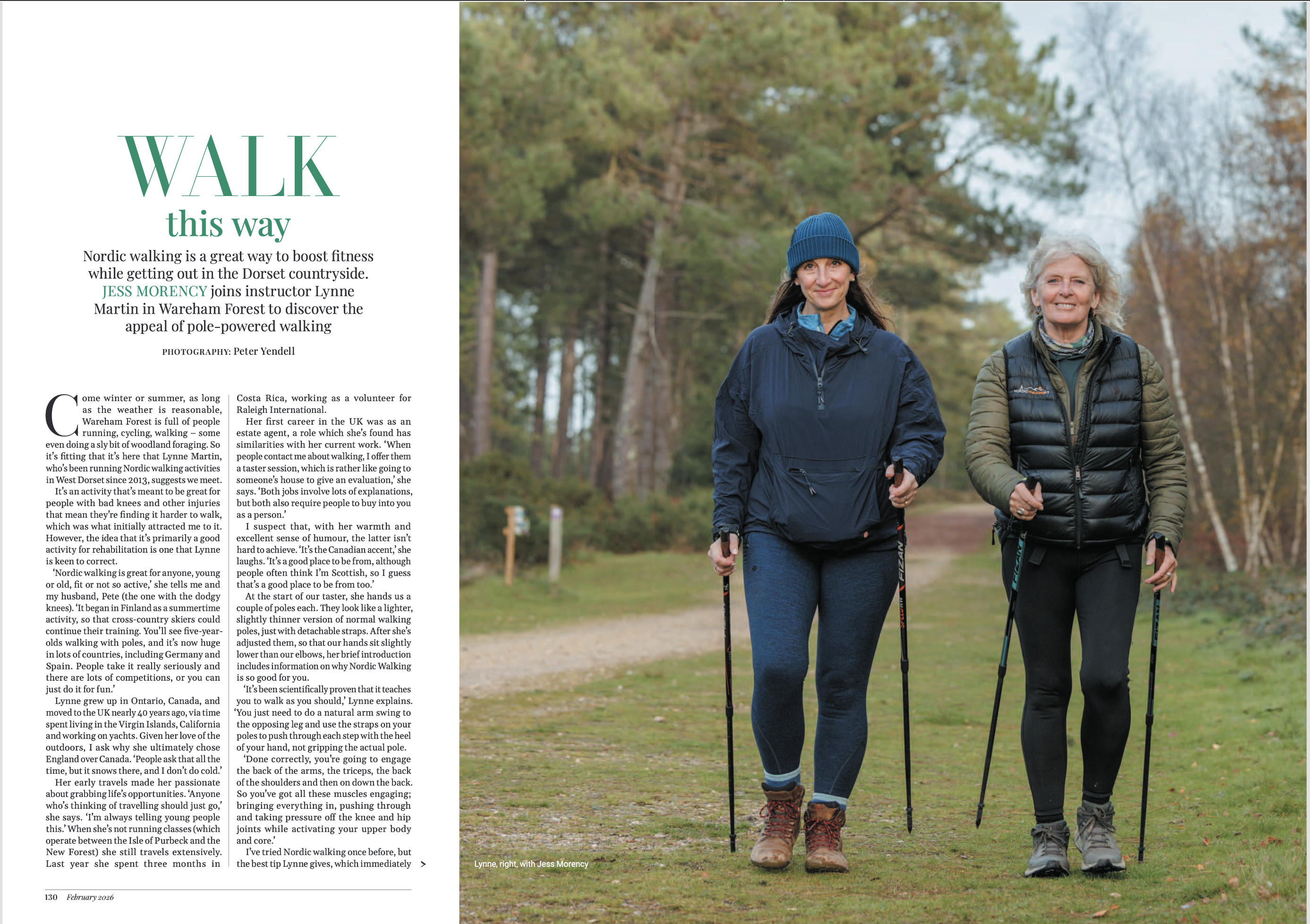 Walk this Way Posted byJess MorencyFebruary 10, 2026Posted inDorset MagazineTags:lynne martin, nordic walking, Purbeck, The Isle of Purbeck, walking holidays, Wareham Forest Share this: Share on X (Opens in new window) X Share on Facebook (Opens in new window) Facebook Like Loading... Related Published by Jess Morency Feature writer, teacher and brand consultant View more posts
