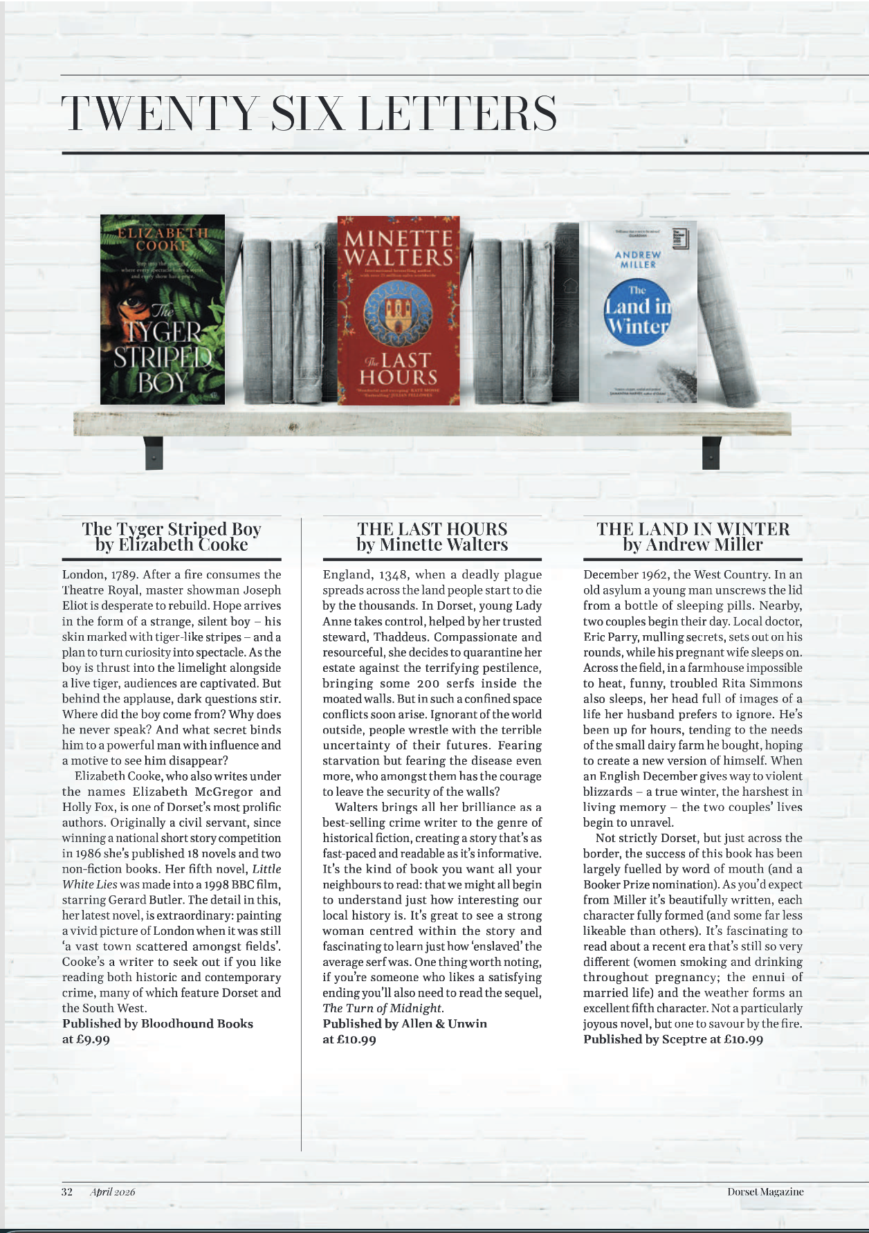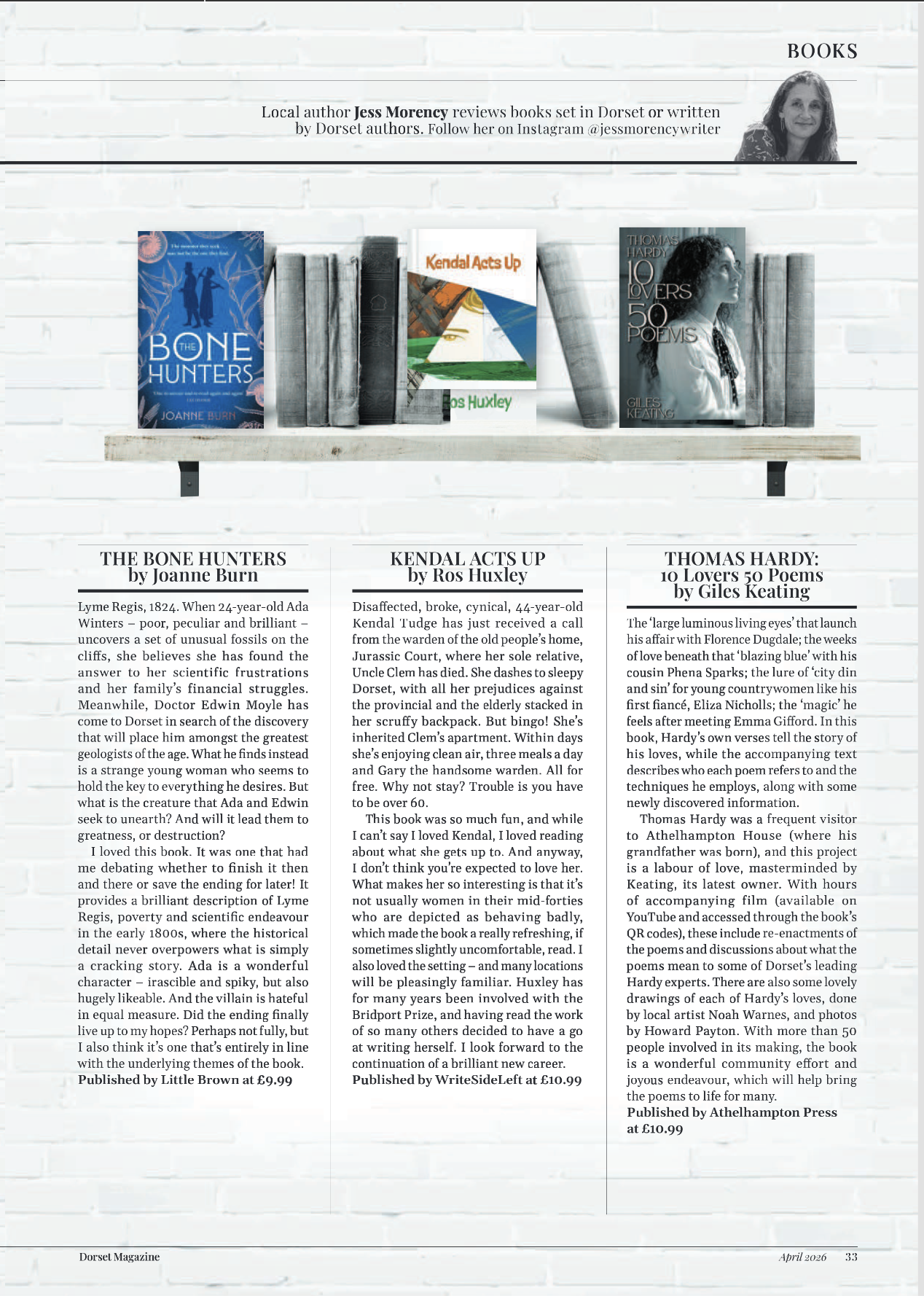 Twenty-six Letters: April Posted byJess MorencyMarch 28, 2026Posted inbook reviews, Dorset MagazineTags:Andrew Miller, Elizabeth Cooke, Fossils, Lyme Regis, Minette Walters, Ros Huxley, Thomas Hardy Share this: Share on X (Opens in new window) X Share on Facebook (Opens in new window) Facebook Like Loading... Related Published by Jess Morency Feature writer, teacher and brand consultant View more posts